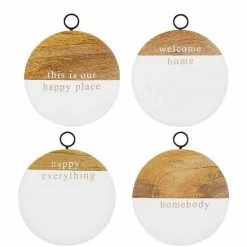 Best Sale 🔔 Mud Pie Happy Wood Coaster Set Dark Beige ❤️