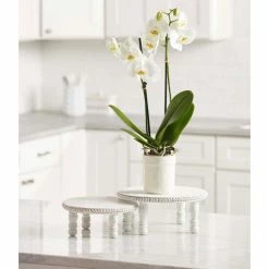 Outlet 🥰 Mud Pie White-wash Beaded Pedestal Wood Trays, Set Of 2 🤩