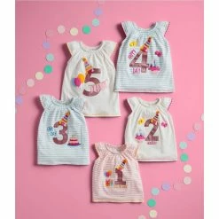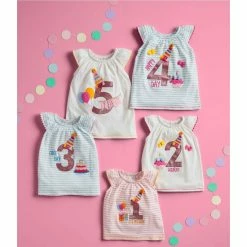 Brand new ⭐ Mud Pie Little 👧 Girls 3T Flutter-Sleeve Glitter 3rd 🎂 Birthday Striped Tunic Top Blue ⌛