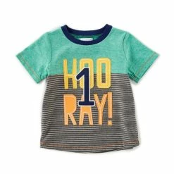 - layered interlock and felt sentiment appliquΓ© with #double;Hooray#double; verbiage and the numeral #double;1#double; on the front