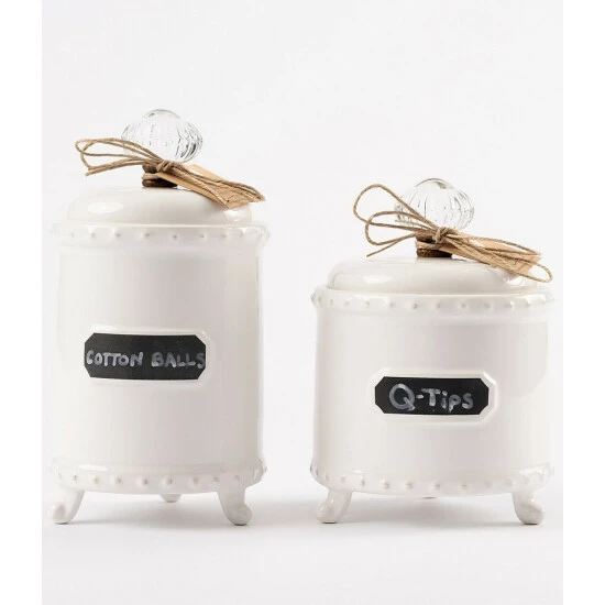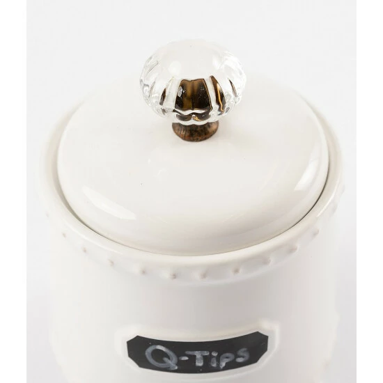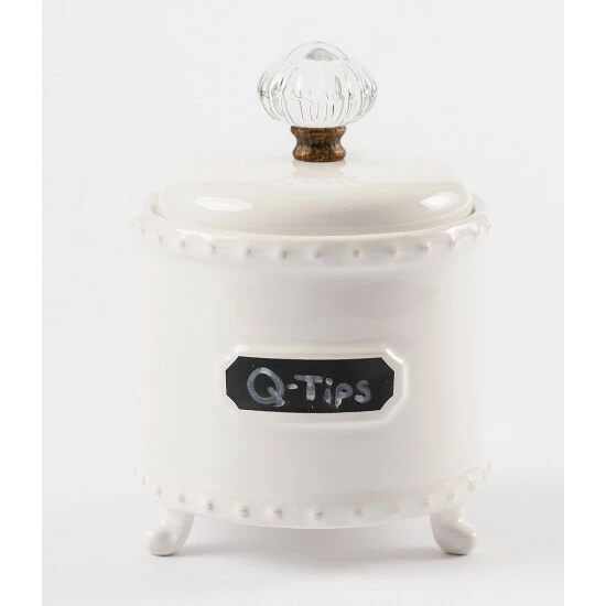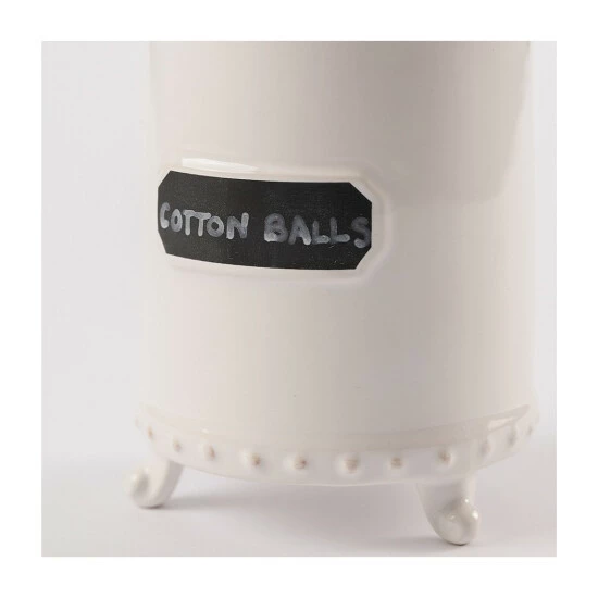These unique canister is perfect for bathroom storage. The circa canister features a beautiful white color. The canister features a chalkboard material at the front, making it perfect for personalization. ( chalk not included). These canisters would be perfect for storing bathroom essentials like cotton balls, q tips and more.
