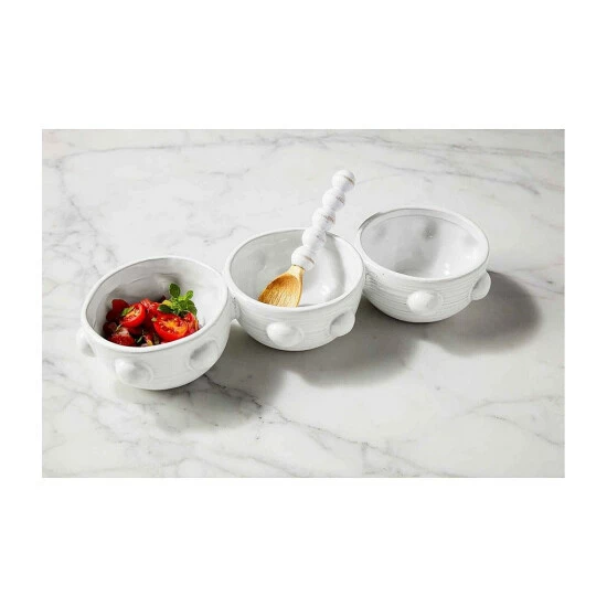 Cheap ๐ Mud Pie Beaded White Washed Wood Pedestal Bowl ๐งจ