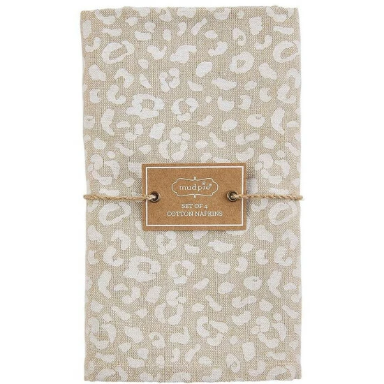 From Mud Pie, this set of four cheetah print napkins feature:ย