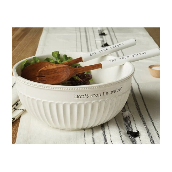 From Mud Pie, this salad bowl set features: