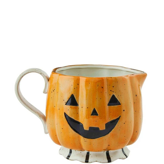 From Mud Pie, Hand-painted stoneware pitcher with textural detail and pedestal base features :