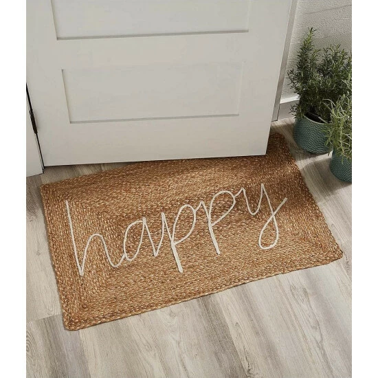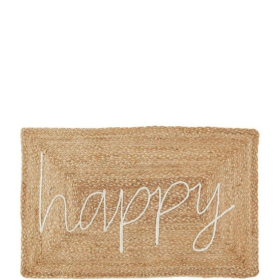 - Braided jute door mat features cotton rope applique and printed sentimentΒ