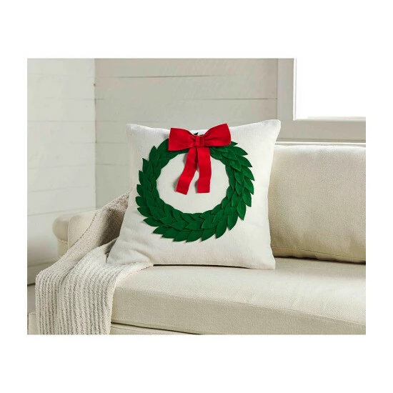 - Wreath accented with red bow