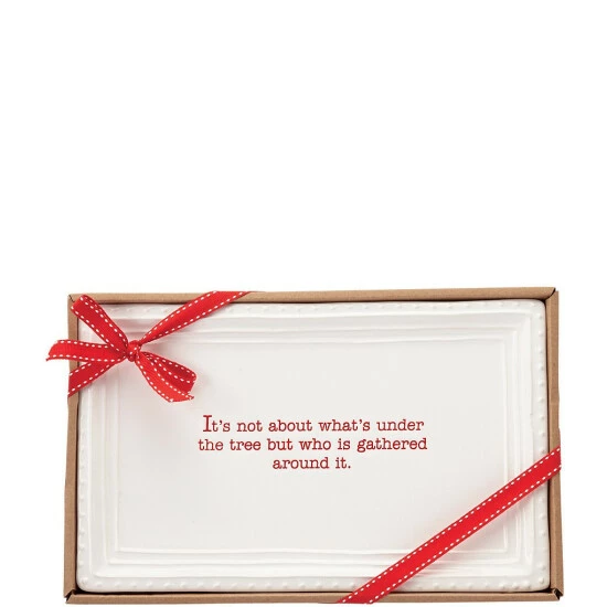 - Debossed sentiment wording โItโs not about whatโs under the tree but who is gathered around itโย