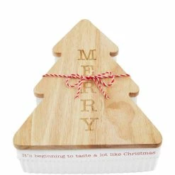 - Sentiment wording on baker #double;It’s beginning to look like Christmas#double; and stamped on trivet #double;MERRY#double;