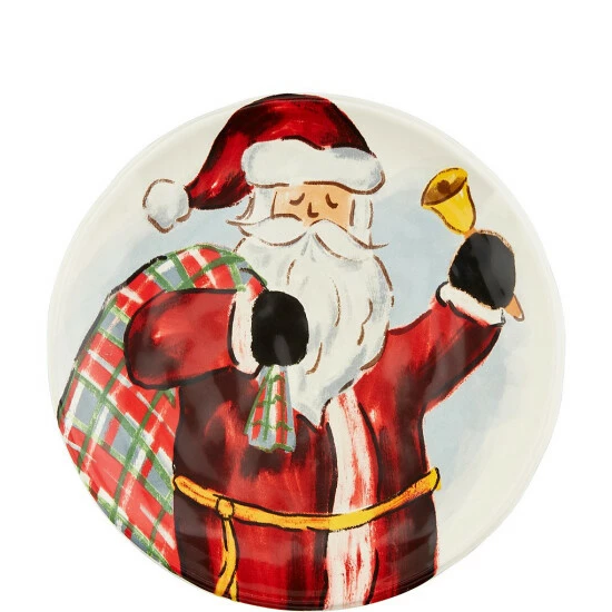 From Mud Pie, this Holiday Round Santa Gift Sack salad plates feature: