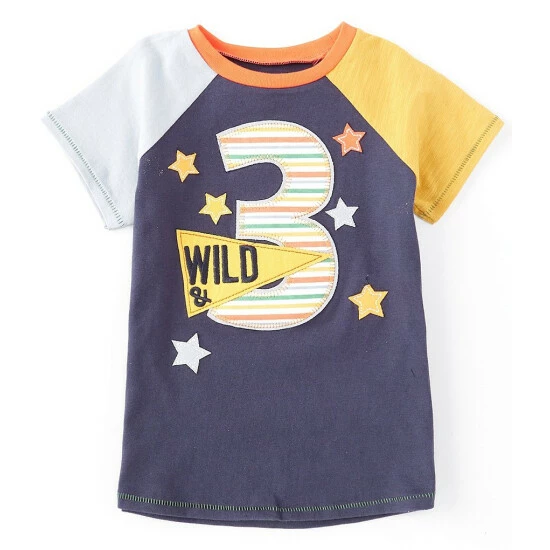 - Slub jersey applique with printed and embroidered #double;3#double; detail