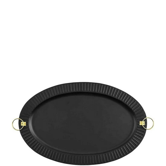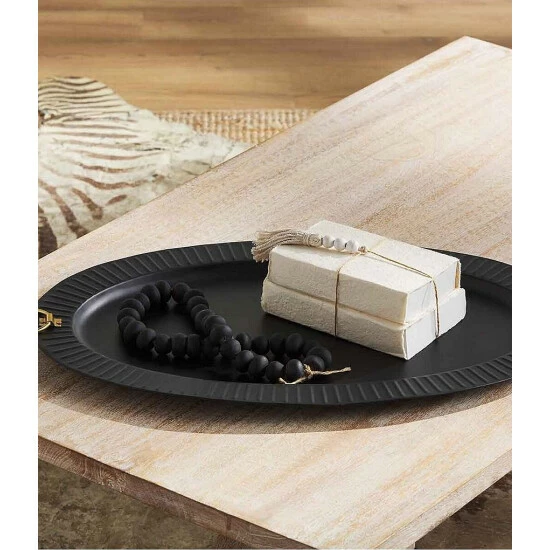From the Mercantile Collection by Mud Pie, this oval tray features:
