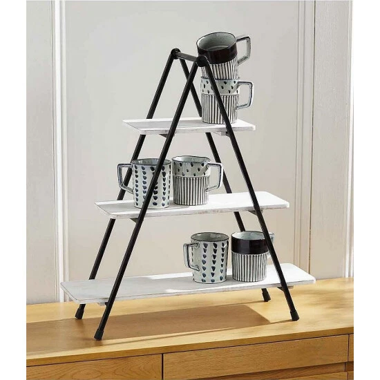 From Mud Pie, the White Three Tier Wood Server features:Β