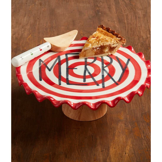 From Mud Pie, this cake pedestal set features:Β