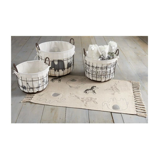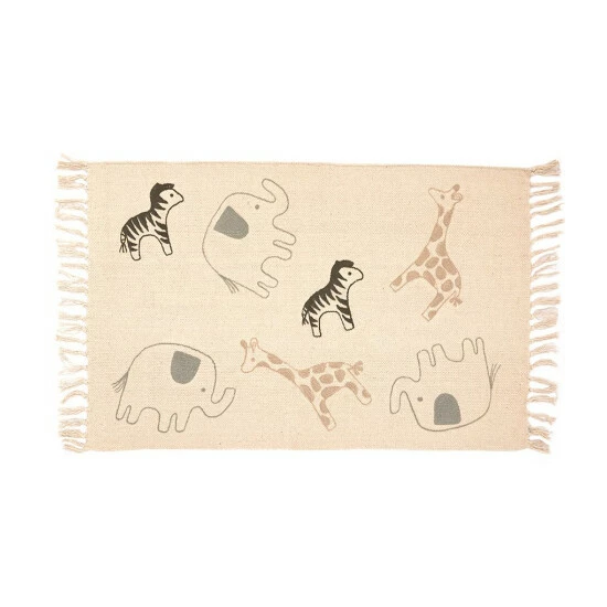 - Cotton throw rug features safari animal embroidery