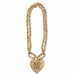 From the Wedding Collection by Mud Pie, the Natural Etched Beaded Decor Heart Pendant features:ย