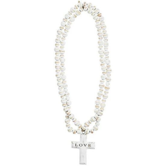 From the Wedding Collection by Mud Pie, the White Etched Bead Decor with Cross Pendant features:Β