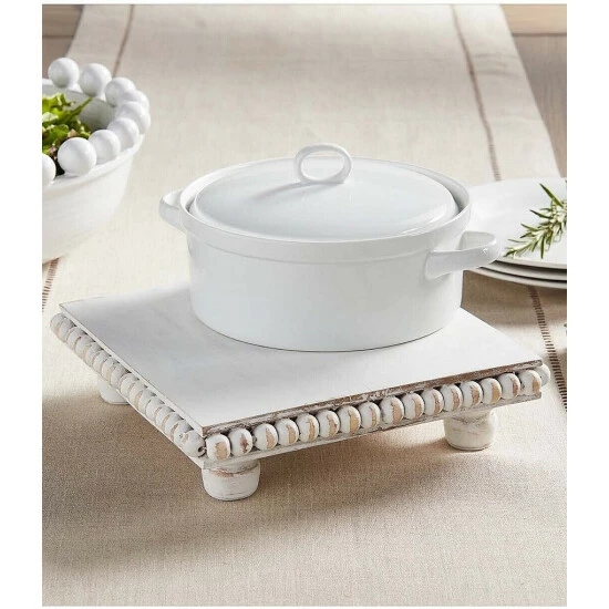 Cheap ๐งจ Mud Pie White Washed Beaded Serving Board Set ๐